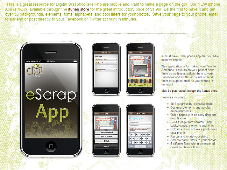 . . . ich bin ja ein bekennender Gadget-Fanatiker . . . zugegeben . . . durch Zufall bin ich gerade auf der Digi-Seite von DCVW gelandet und war ueberrascht zu sehen, dass man jetzt offensichtlich auch schon mit dem iPhone digital scrappen kann . . . da bekommt der Ausdruck  “scrapping on the go” doch eine komplett neue Bedeutung . . . 😉