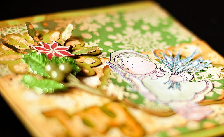 Ich sagte ja bereits-sobald Halloween vorbei ist komme ich in Weihnachtsstimmung . . . so sieht es zumindest in meinem Scrapzimmer bereits ziemlich weihnachtlich aus (wenn man die herumliegenden Papiere, Stempel & Embellishments betrachtet zumindest) . . . die ersten zwei Karten sind bereits fertig-zum Einen habe ich mal die Magnolia-Stempel hervorgekramt (die-Schande ueber mich-seit dem Mekka 2008 ihr Dasein immernoch in der pinkfarbenen Papiertuete mit weissen Puenktchen fristeten in der ich sie gekauft hatte . . . zumindest auf EZ-Mount montiert hatte ich sie damals ja bereits-aber zu mehr bin ich damit auch noch nicht gekommen).