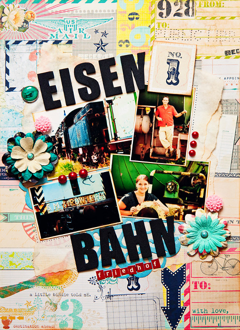 Material: PP: Pink Paislee / House of Three-Daily Junque Collection; Buchstaben: American Crafts Thickers, Cosmo Cricket Tiny Type;