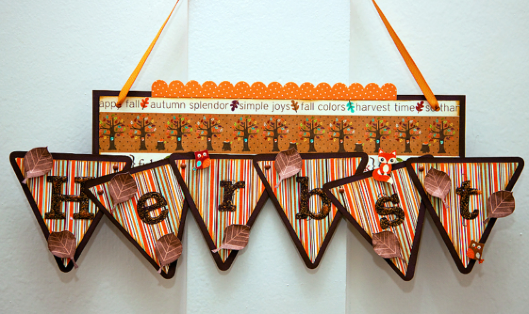 Nachdem es ja gestern hier schon etwas weihnachtlich wurde, passen wir uns jetzt in der Jahreszeit wieder ein Bisschen der Realitaet an . . . mit den schnuckeligen Papieren der Serie “Happy Harvest” von Imaginisce, welche ich in diesem Monat von der Scrapbook Werkstatt zum werkeln zur Verfuegung gestellt bekommen habe, habe ich eine kleine Herbst-Deco fuer unsere Wohnungstuer gezaubert . . .