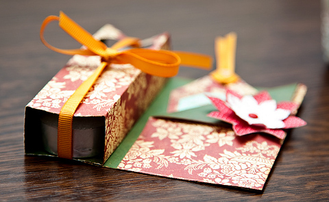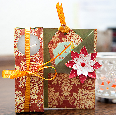 Und eine kleine Geschenk-Verpackung fuer 3 Teelichter-super-schnell gemacht mit dem ScorPal, den ich gerade wieder fuer mich neu entdeckt habe  🙂