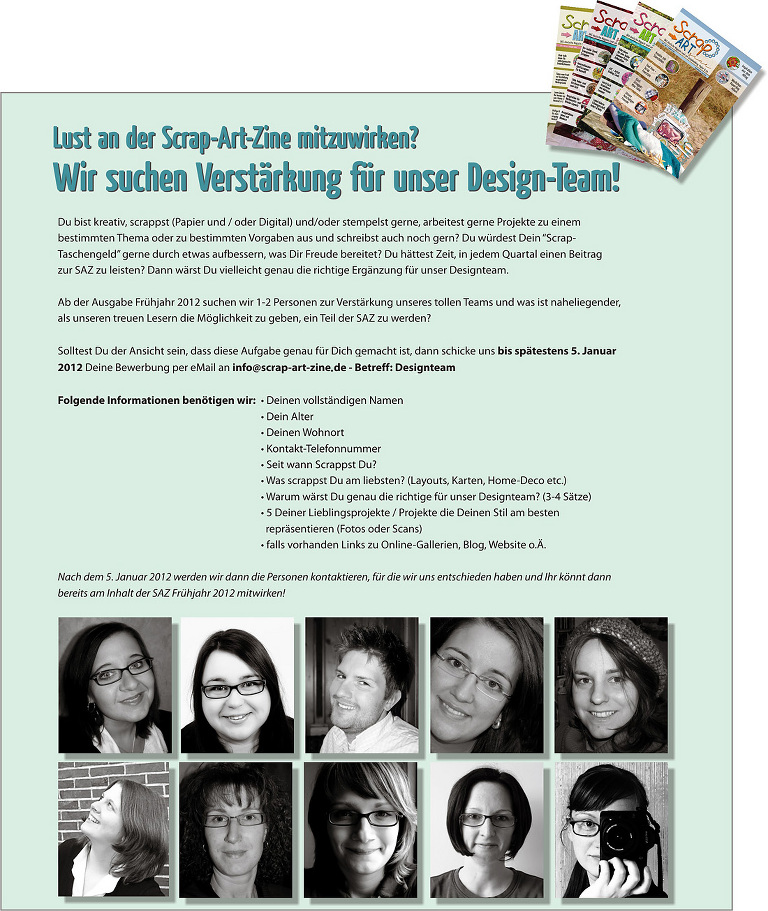 Ihr moechtet Euer Scrap-Taschengeld etwas aufbessern und Eure Kreativitaet teilen?