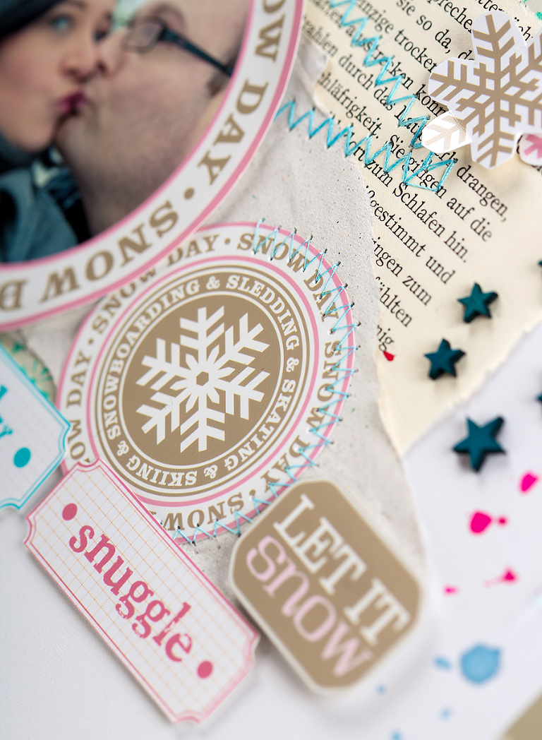 I am in love with digital Scrapbook-Elements. Not because I like to scrap digitally-but because I love the options it gives me to use them in a hybrid way. I can re-size all the elements as I wish and then print them. Not only is it pretty cheap (I printed all the PinkPaislee Elements I used here in this Layout on a 13 x 18 cm Photo for only 22 Cent)-you can also use the Elements over and over again once you are purchased / downloaded a Kit . . . love that 🙂