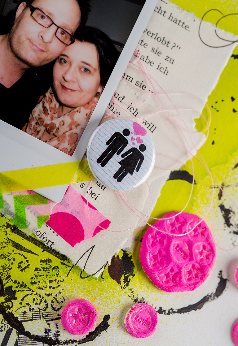 Die verwendeten Flair-Buttons bekommt Ihr in meinem Dawanda-Shop . . .