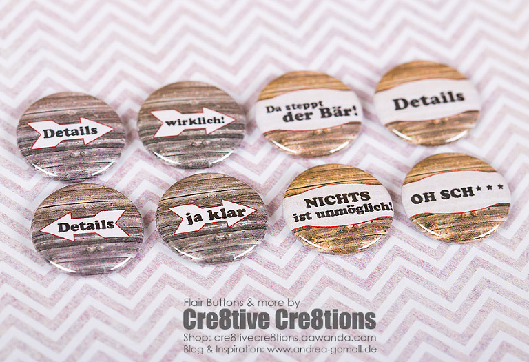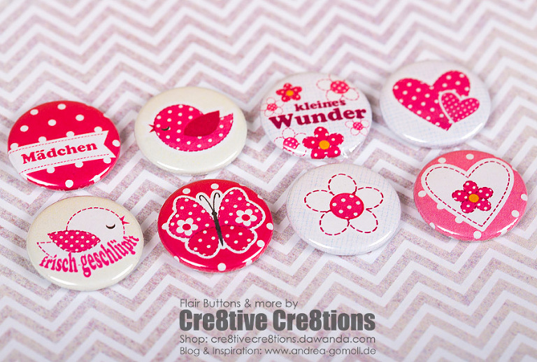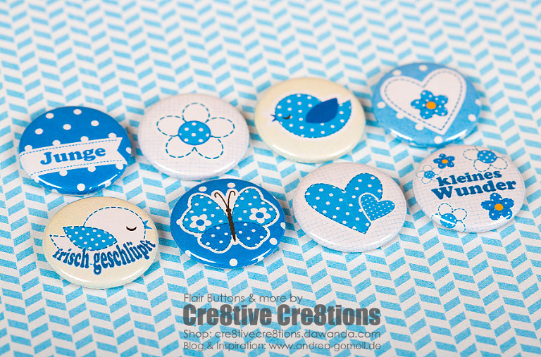 Wow, schon wieder so schöne Buttons. Da ich ja meine erste Button Bestellung schon verarbeitet habe, werd ich gleich mal shoppen gehen.