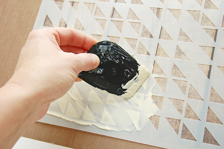 Pull back the Stencil while the Paint is still dry to reveal the Pattern. Let dry.