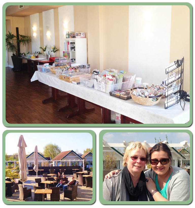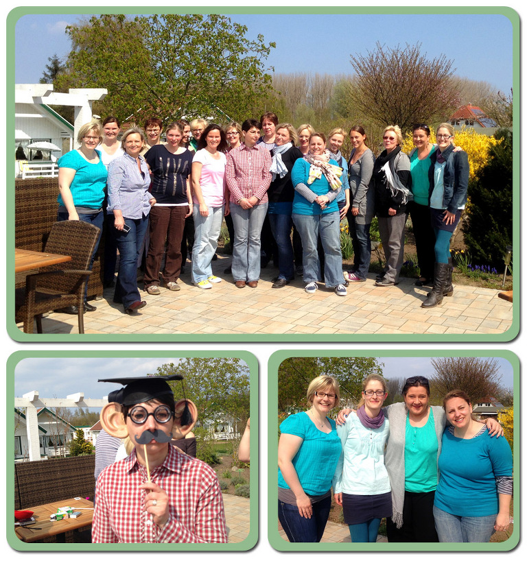 Bei wirklich traumhaftem Wetter wurde 3 Tage lang gescrappt, ausprobiert, “gematscht”, geschnackt, gelacht, lecker gegessen und einfach eine kleine Auszeit vom Alltag genossen. Die Location-der Tarnewitzer Hof-war wundervoll-wir hatten einen schoenen, großen, hellen Raum fuer unsere Kurse und eine traumhafte große Sonnenterrasse ganz fuer uns allein. Es gab tolle Kurse von der lieben Nat (hab mich sooo gefreut Dich endlich mal wieder zu sehen!!!), von Barbara und von meiner Wenigkeit und die Zeit verging-wie immer bei solchen Events-viel zu schnell!