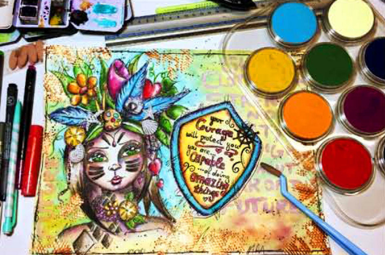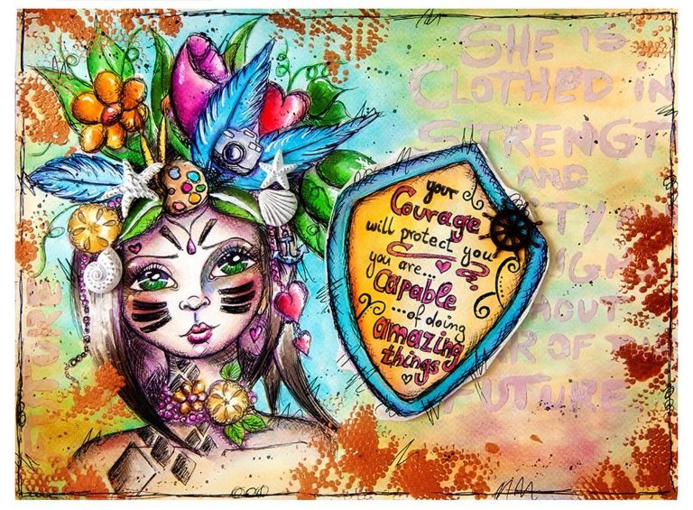 This Mini Class features my Lifebook 2015 Lesson Our Inner Warrior Princess. We will bring our inner Warrior Princess to Life on Paper using a variety of Supplies, making it a unique, fun and colorful Mixed Media Project.